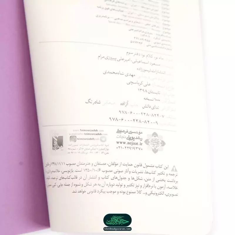 این کتاب توسط آقایان مسعود اسماعیلی و امیرعلی پیروزی مرام در 44 صفحه نوشته شده است. ناشر این کتاب انتشارات تیمورزاده می باشد.